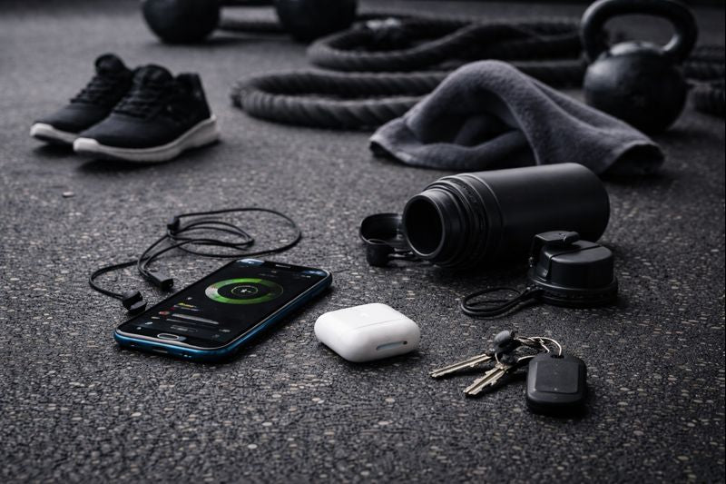 Antwort 3: Handy, Kopfhörer, Trinkflasche, Schlüssel, Wallet und weiteres Gym-Zubehör – alles, was du während des Trainings schnell brauchst.